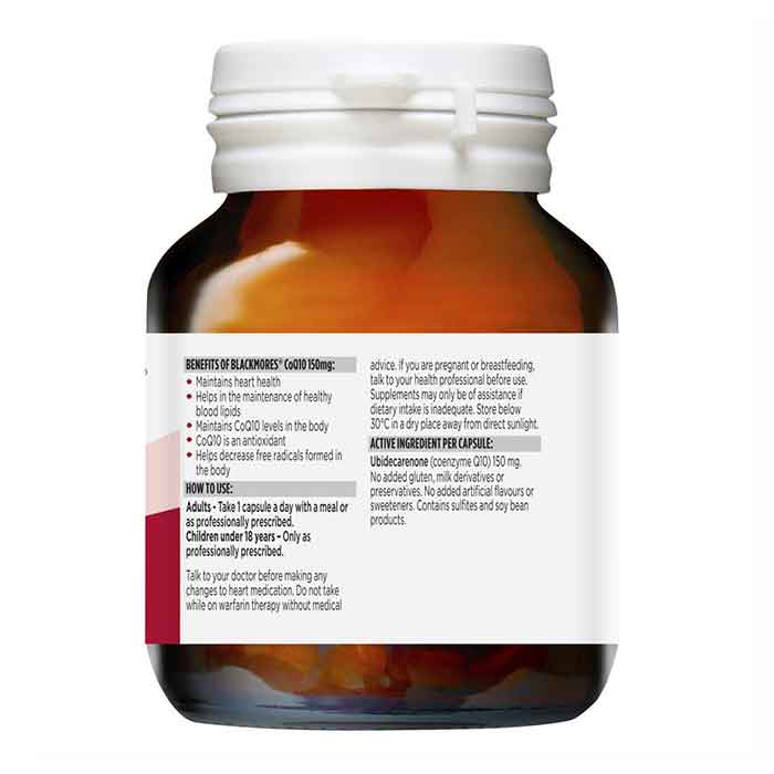 Viên uống bổ tim mạch Blackmores CoQ10 là nguồn cung cấp coenzyme Q10 (CoQ10), một chất chống oxy hóa giúp duy trì sức khỏe tim mạch và lipid máu khỏe mạnh.