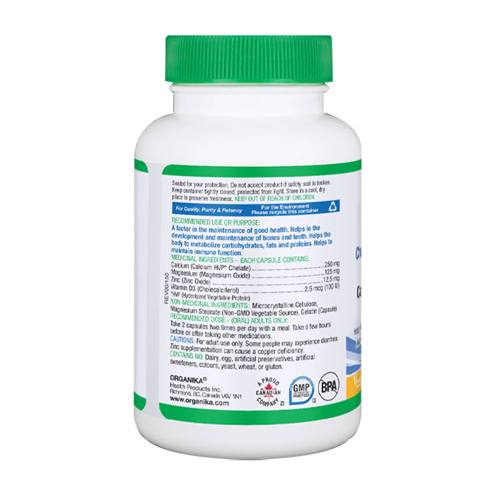 Viên bổ sung cho xương khớp Chelated Calcium Magnesium Zinc Vitamin D3 Organika có thành phần: