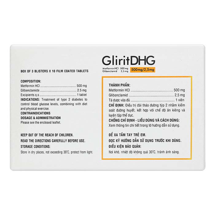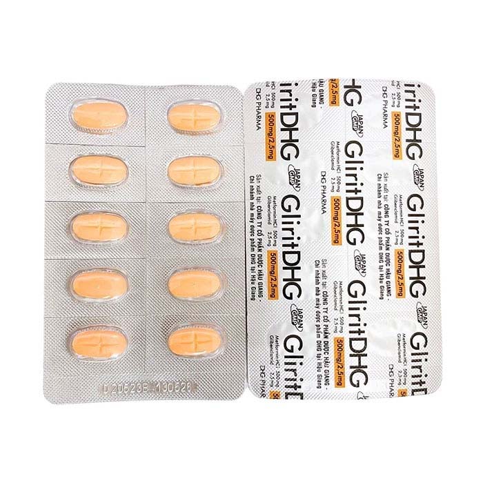 Thuốc điều trị tiểu đường GliritDHG 500mg/2.5mg có thành phần: