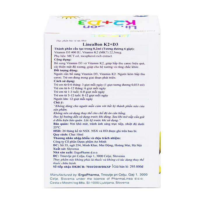 Nhỏ giọt tăng chiều cao Lineabon K2 D3 có thành phần: