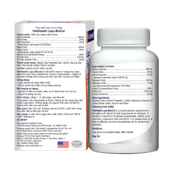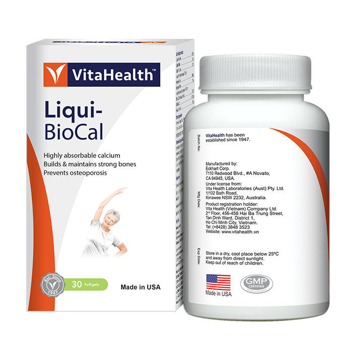 Viên uống bổ sung Canxi VitaHealth Liqui-BioCal có thành phần: