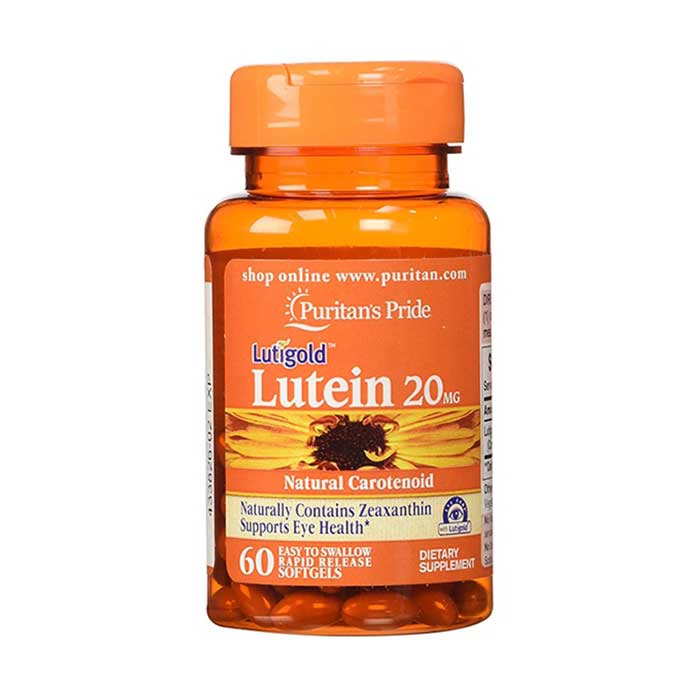Viên bổ mắt Puritan’s Pride Lutigold Lutein 20 mg bổ sung Lutein giúp tăng cường thị lực, duy trì sức khỏe mắt, bảo vệ võng mạc và giúp các điểm vàng không bị tổn thương. Đồng thời, viên uống giúp chống oxy hóa, hỗ trợ điều trị các bệnh liên quan đến quá trình lão hóa ở mắt, cho đôi mắt sáng khỏe hơn. Sản phẩm phù hợp với người làm việc văn phòng, tiếp xúc nhiều với máy tính, học sinh, người cao tuổi, người có thị lực kém, đau mỏi mắt.