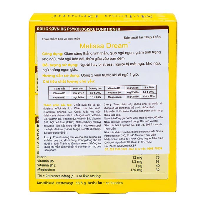 Viên uống giảm căng thẳng, ngủ ngon Melissa Dream có thành phần: