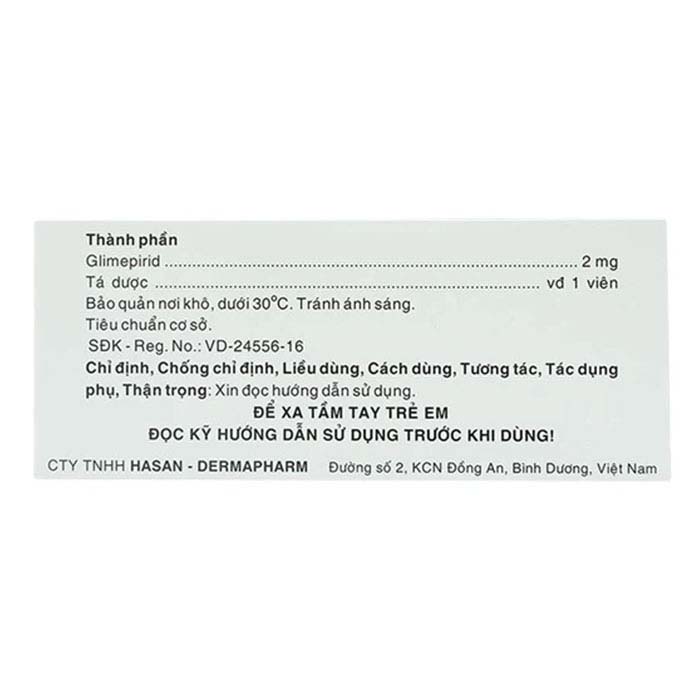 Thuốc điều trị tiểu đường Miaryl 2mg Hasan có thành phần: