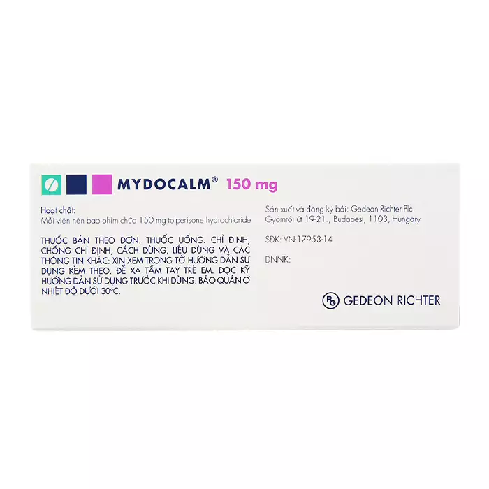 - Hoạt chất: Tolperison Hydrochlorid 150mg.