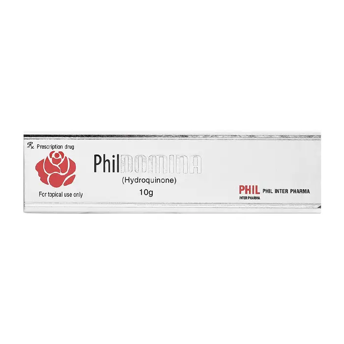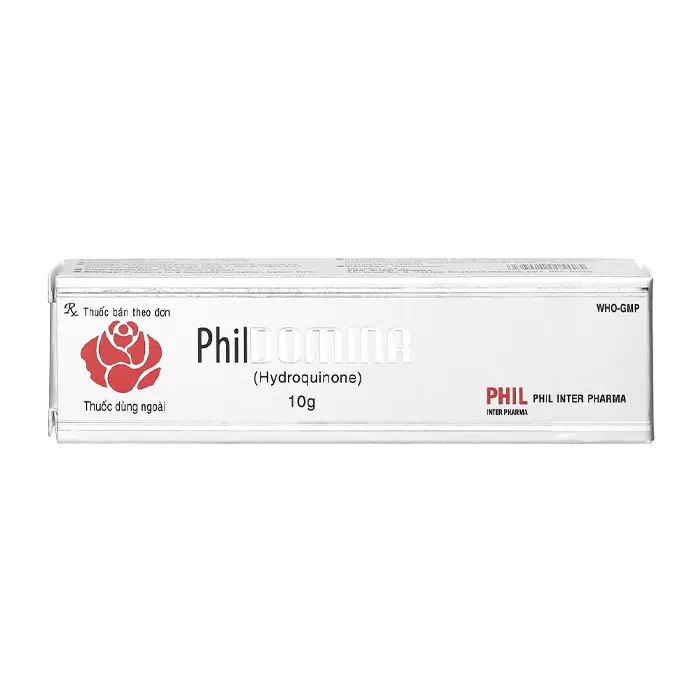 - Hydroquinone là tác nhân tẩy trắng da có thể gây ra những tác dụng không mong muốn nếu dùng không đúng theo chỉ dẫn. Thử độ nhạy cảm của da trước khi dùng kem PHILDOMINA bằng cách bôi một ít thuốc lên một vùng nhỏ của da không bị tổn thương và kiểm tra trong 24 giờ. Nếu xuất hiện vết đỏ nhỏ thì vẫn có thể dùng chế phẩm này, nhưng nếu xảy ra ngứa hoặc hình thành mụn giộp hoặc có đáp ứng viêm quá mạnh thì không nên tiếp tục sử dụng. Tránh để thuốc tiếp xúc với mắt. Nếu sau khi điều trị 2 tháng không thấy tác dụng tẩy trắng hoặc làm sáng da thì nên ngưng dùng thuốc.