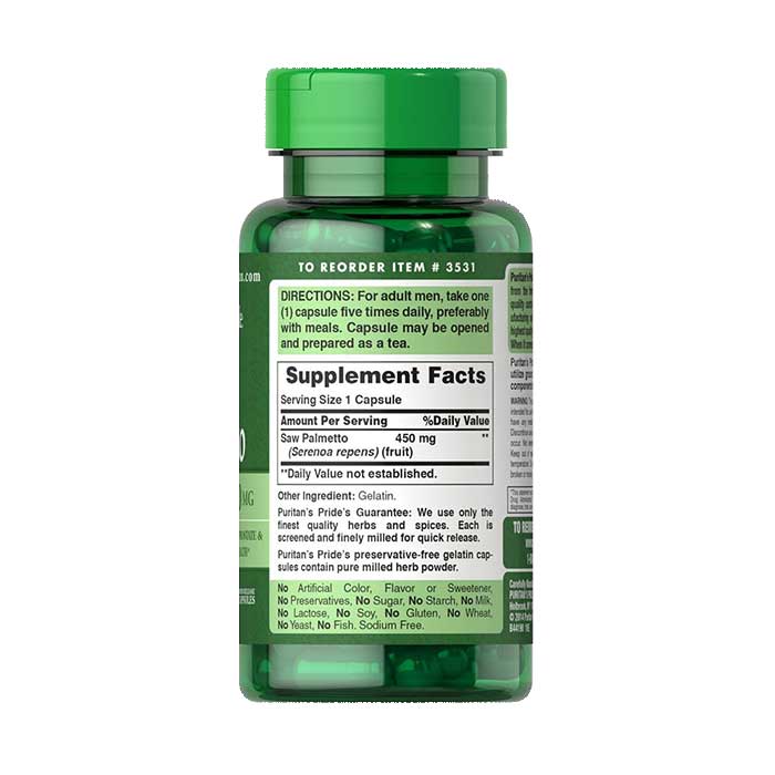 Viên uống hỗ trợ đường tiết niệu Saw Palmetto 450mg Puritan’s Pride có thành phần: