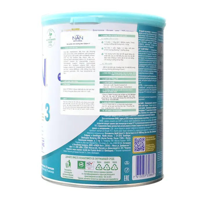 Sữa NAN Optipro 3 là sản phẩm dinh dưỡng công thức từ Thụy Sĩ, bổ sung các dưỡng chất thiết yếu giúp hỗ trợ tiêu hóa, tăng cường sức đề kháng của trẻ.