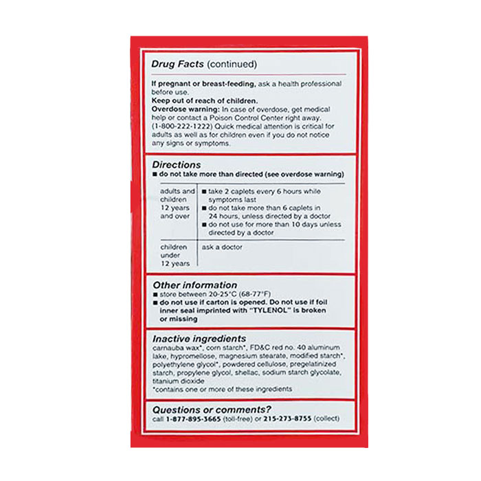 - Không được dùng Tylenol Extra Strength 500mg để tự điều trị giảm đau quá 10 ngày ở người lớn hoặc quá 5 ngày ở trẻ em. Trừ khi do thầy thuốc hướng dẫn.