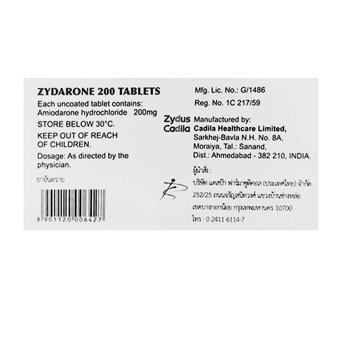 Zydarone 200mg tích lũy ở nhiều mô nên có thể gây nhiều tác dụng có hại ở những người bệnh điều trị loạn nhịp thất với liều cao (trên 400 mg/ngày). Các phản ứng có hại nguy hiểm nhất là nhiễm độc phổi, bệnh thần kinh, loạn nhịp nặng, xơ hóa tuyến giáp và tổn thương gan. Ngừng dùng thuốc khi nghi ngờ xuất hiện phản ứng có hại nguy hiểm. Tuy nhiên các phản ứng có hại không phải bao giờ cũng được hồi phục sau khi ngừng thuốc. Tỷ lệ và mức độ phản ứng có hại tăng theo liều và thời gian điều trị. Vì vậy chỉ nên dùng liều thấp nhất có thể.